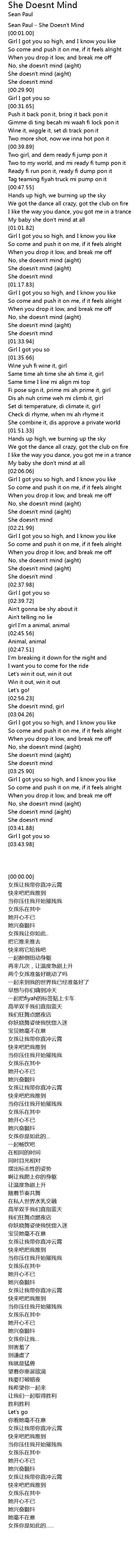 | [00:00.00] | Sean Paul – She Doesn't Mind |