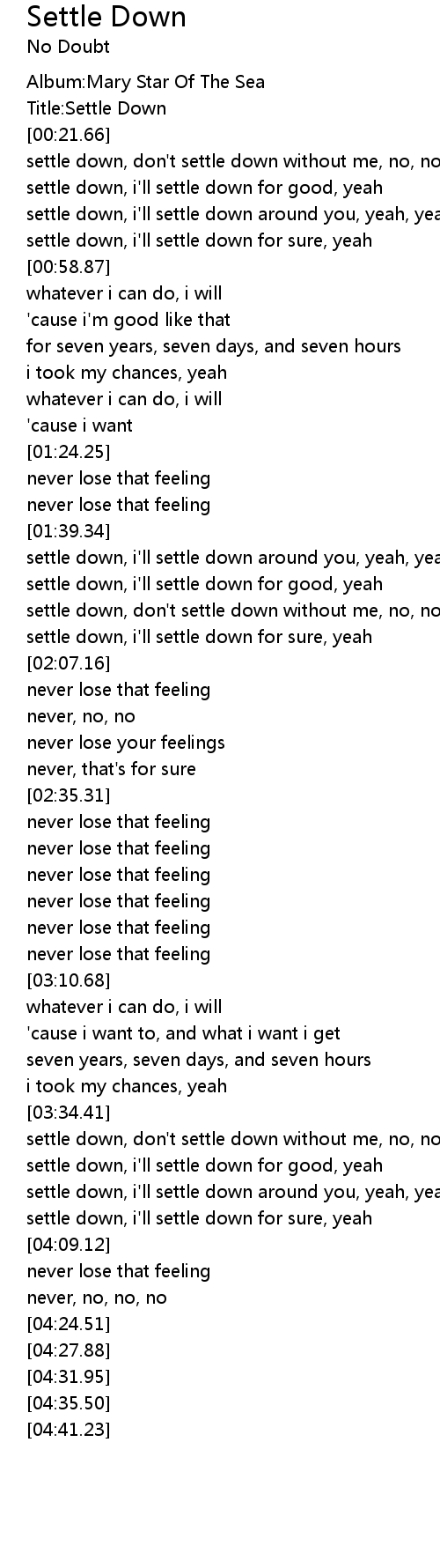 [00:42.46] settle down, i'll settle down around you, yeah, yeah