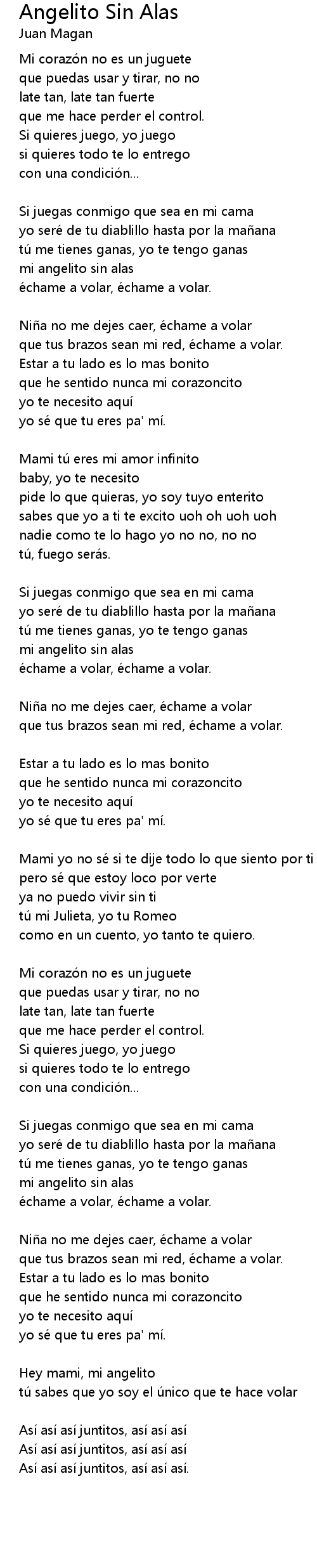 | [ De: http://www.dicelacancion.com/letra-angelito-sin-alas-juan-magan ] | |