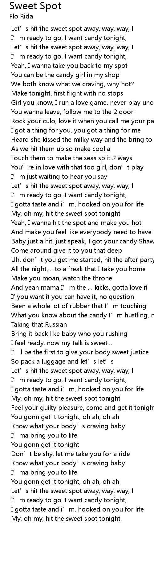 | [00:14.510] | Let’s hit the sweet spot away, way, way, I |