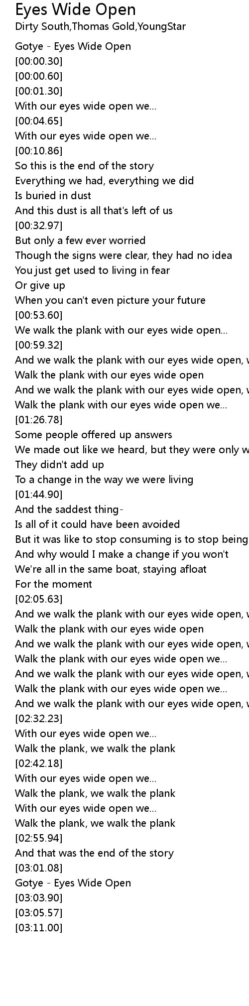 And we walk the plank with our eyes wide open, we.. |
