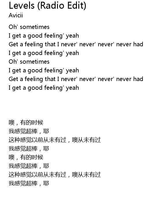 | Song | Levels (Radio Edit) |