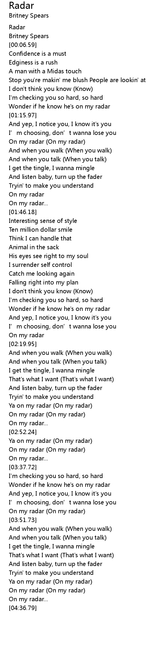 | [03:41.77] | Wonder if he know he' s on my radar |