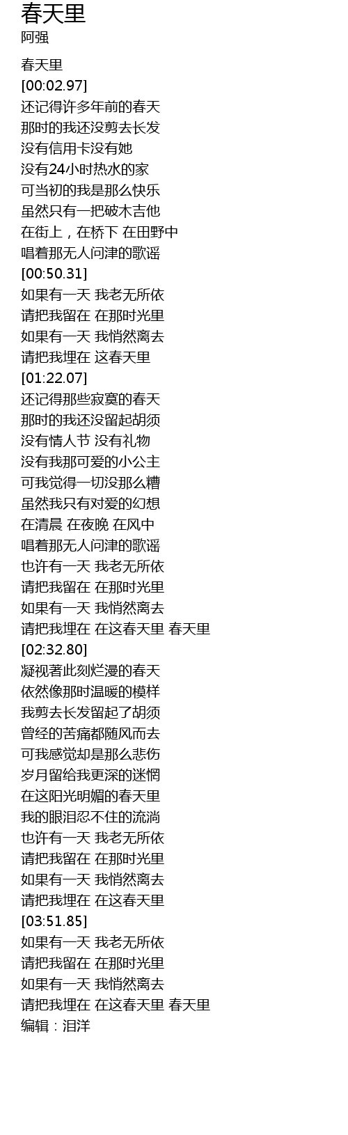 | [04:17.03] | 请把我埋在 在这春天里 春天里 |