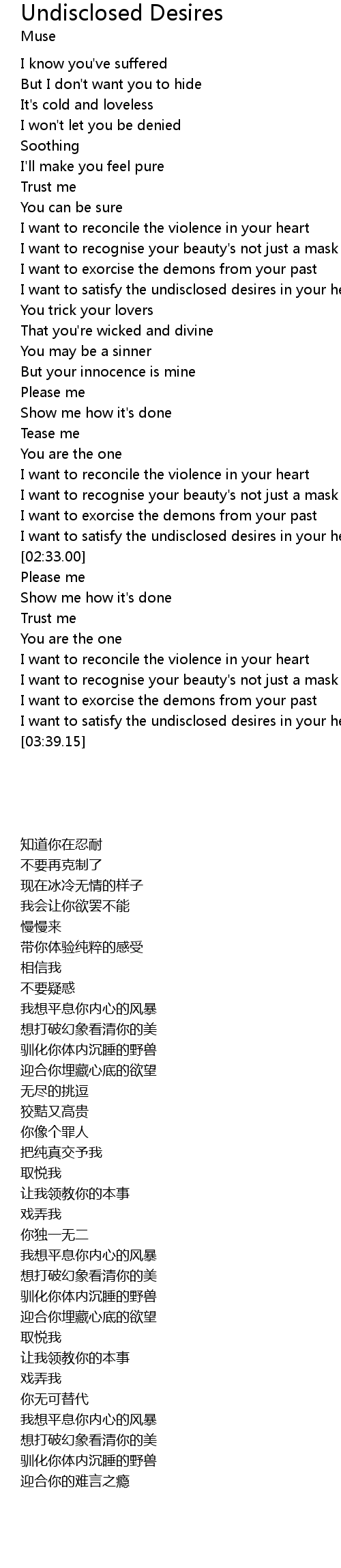I want to satisfy the undisclosed desires in your heart |