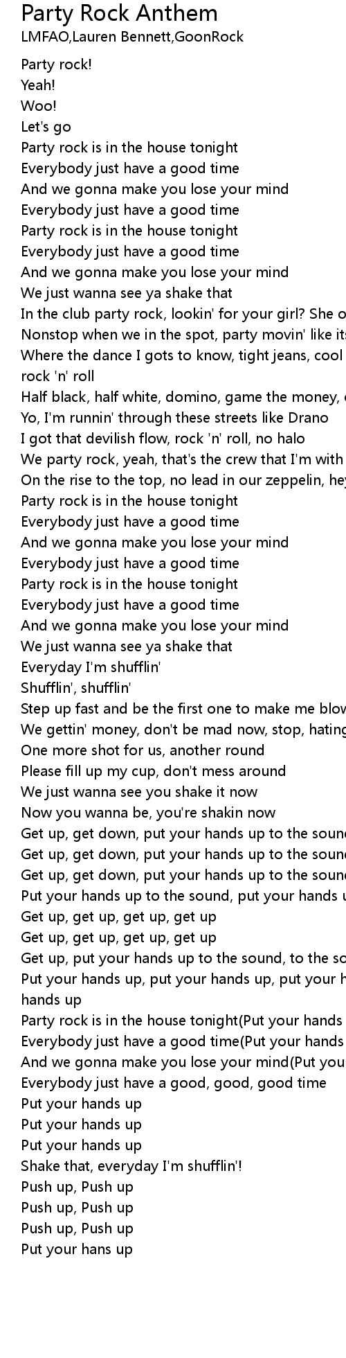 Party rock is in the house tonight(Put your hands up) |