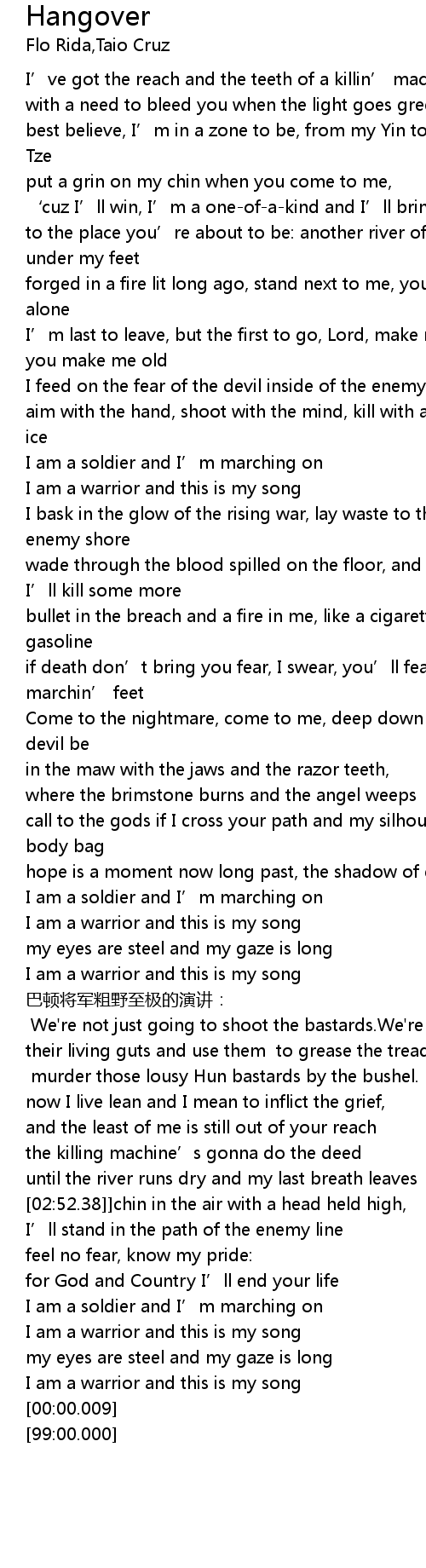 | [01:40.73] | if death don' t bring you fear, I swear, you' ll fear these marchin' feet |