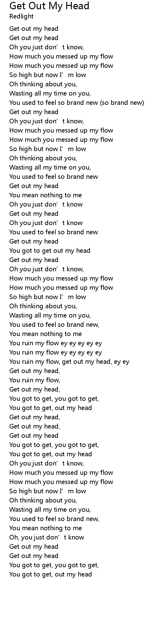 | You got to get, out my head | |