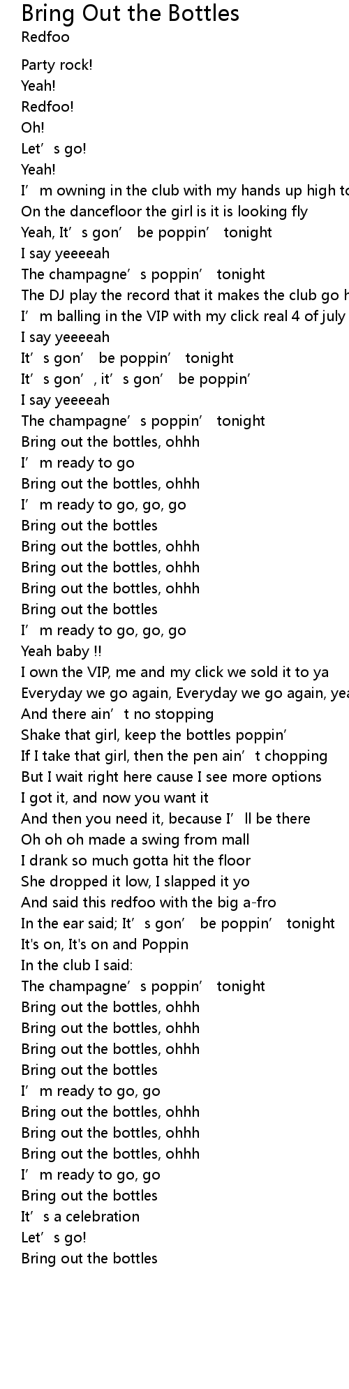 | Yeah, It’s gon’ be poppin’ tonight | |