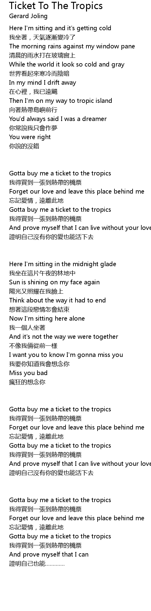 | 我得買到一張到熱帶的機票 | |