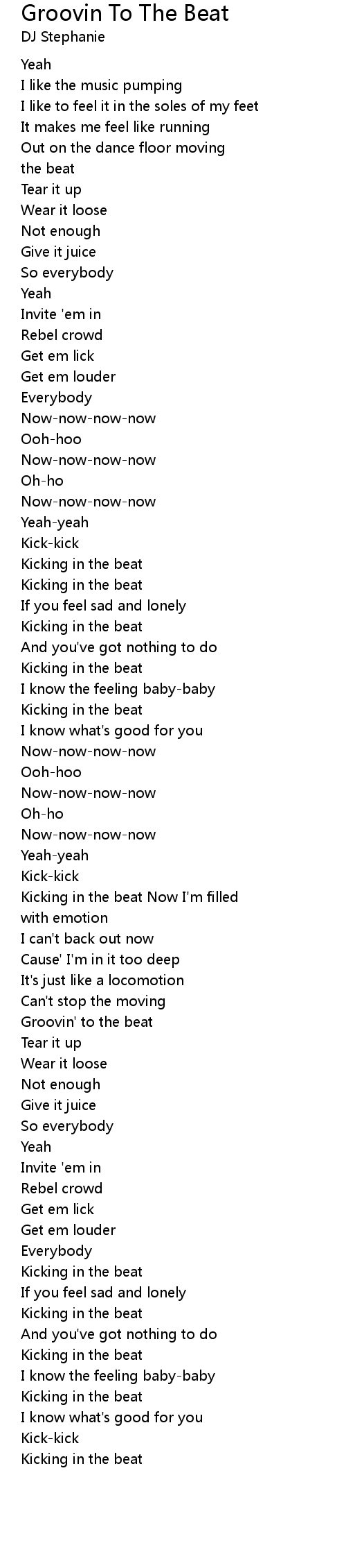 Kicking in the beat Now I'm filled |