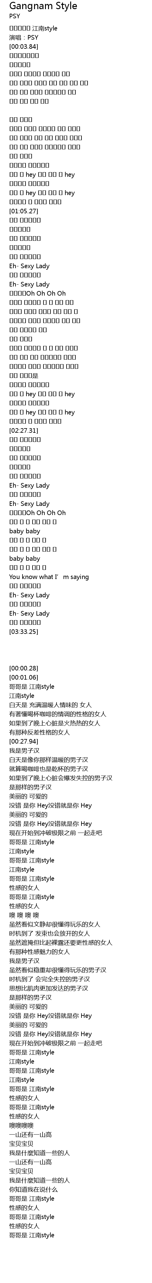 | [00:01.06] | 演唱:PSY |