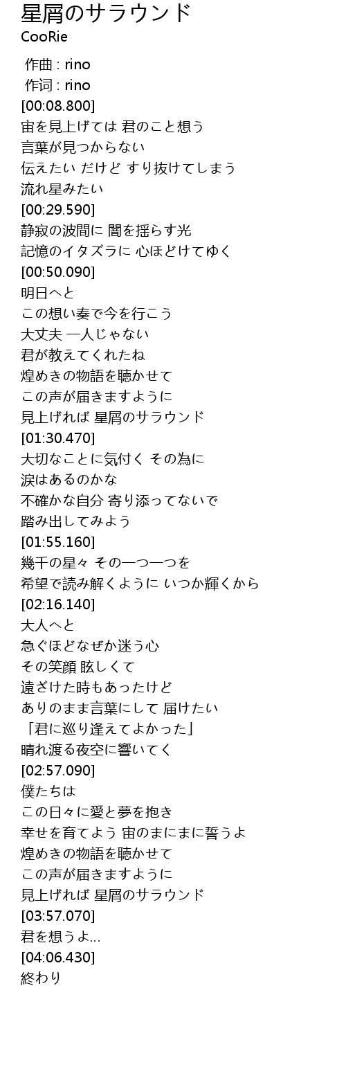 | [03:51.960] | 見上げれば 星屑のサラウンド |
