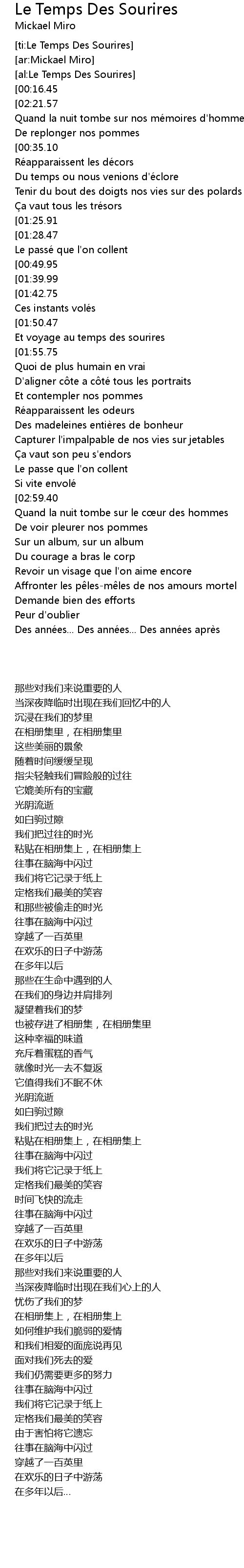 | [01:53.24][02:59.40] | Voyage au temps des sourires |