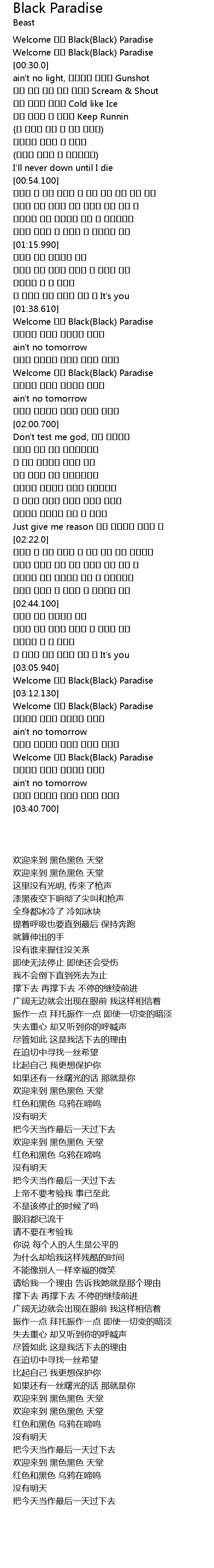 | [03:18.230] | Welcome 여긴 Black(Black) Paradise |