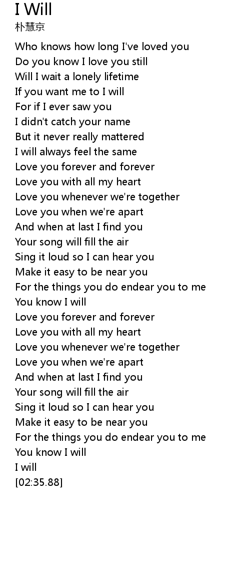 You know I will |