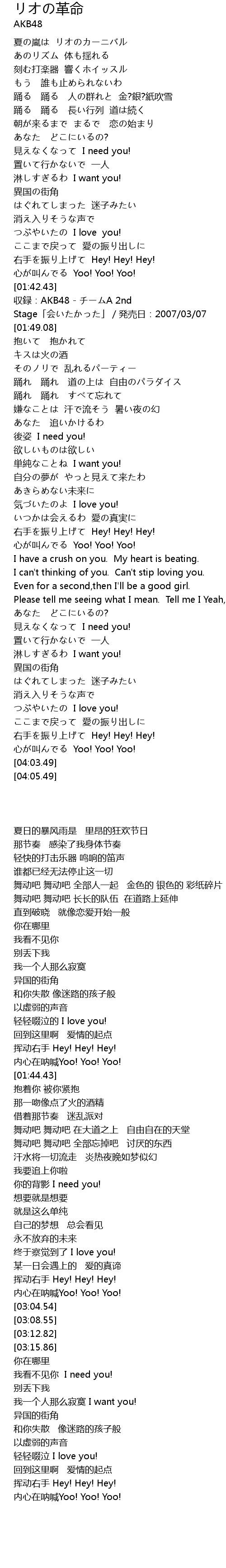 | [01:44.43] | 収録:AKB48 - チームA 2nd Stage「会いたかった」/発売日:2007/03/07 |