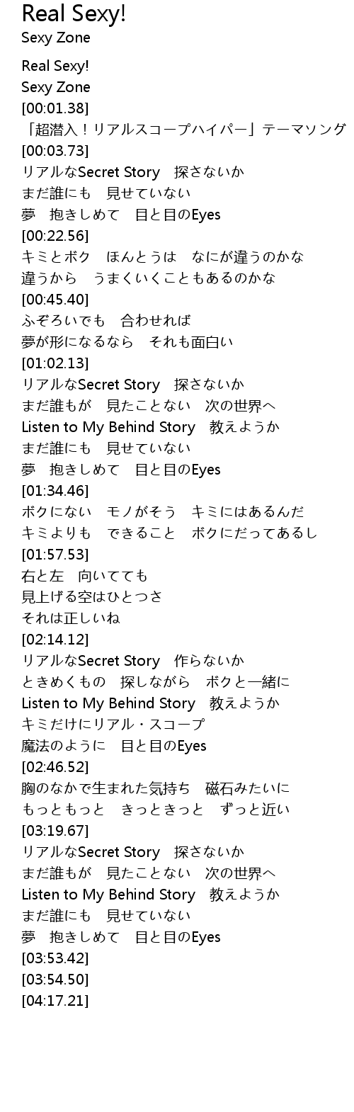 | [00:04.36] | リアルなSecret Story 探さないか |