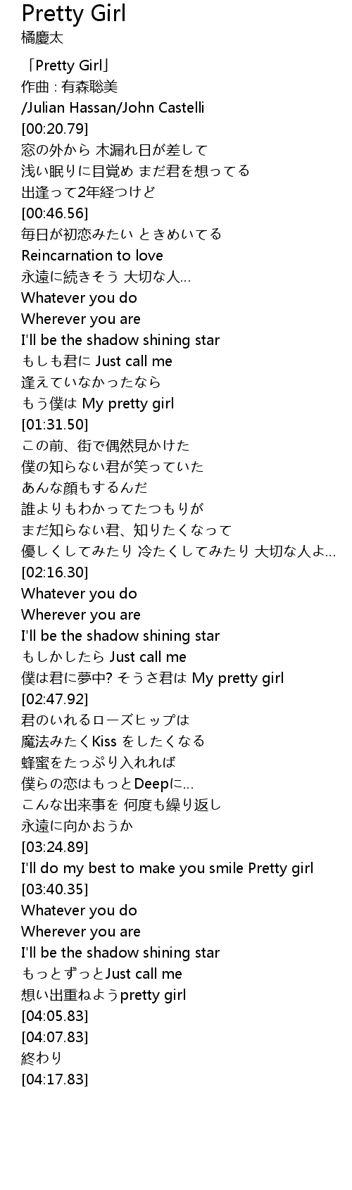 | [00:00.79] | 「Pretty Girl」 |