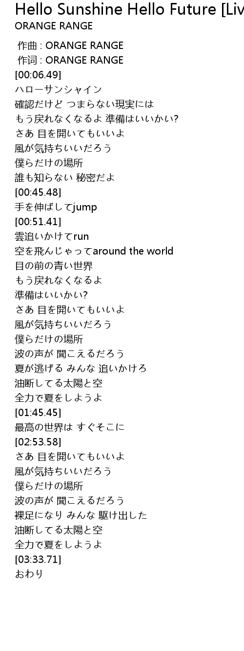 | [00:00.00] | 作曲 : ORANGE RANGE |