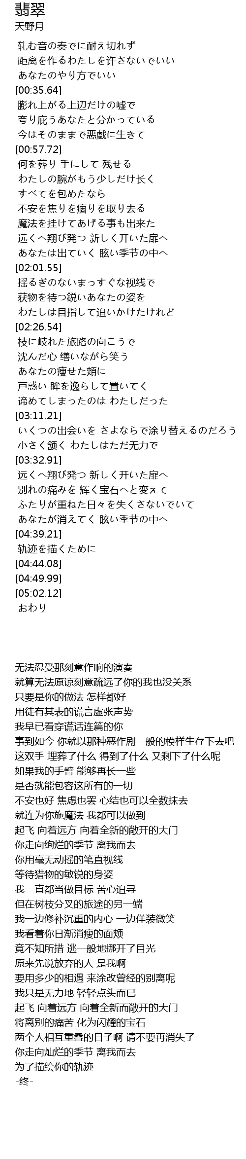 | [02:18.81] | わたしは目指して追いかけたけれど |