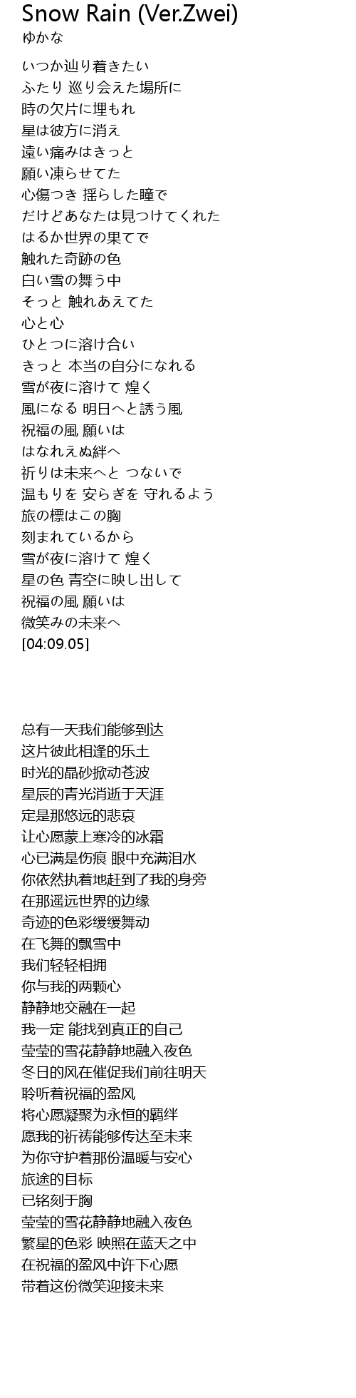 | Song | Snow Rain (Ver.Zwei) |