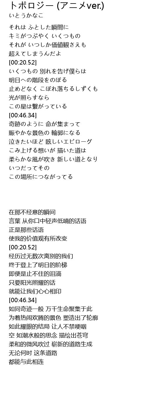 | [00:55.71] | 賑やかな景色の 輪郭になる |