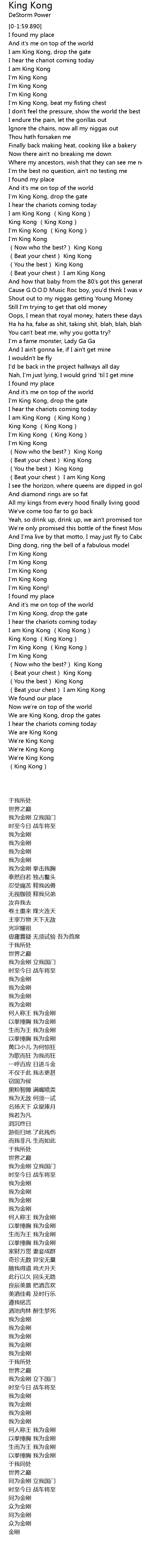 | [01:06.000] | I'm King Kong (King Kong) |