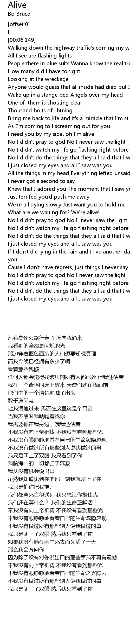 | [00:50.139] | I need you by my side, oh I'm alive |