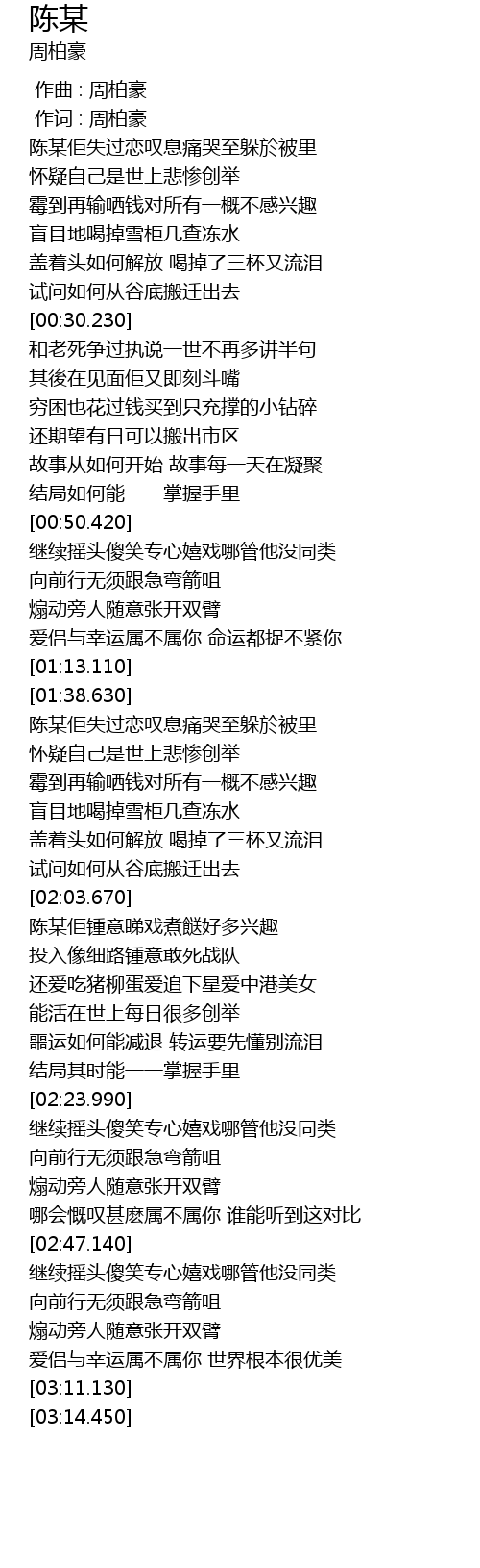 | [00:00.00] | 作曲 : 周柏豪 |