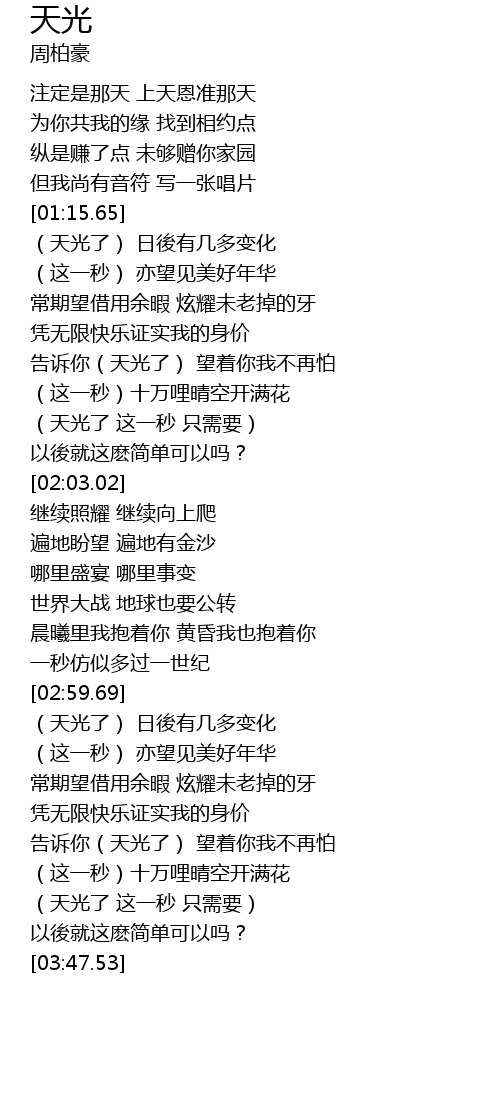 | [03:36.32] | (天光了 这一秒 只需要) |