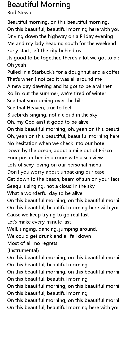 On this beautiful morning, oh, yeah on this beautiful morning |