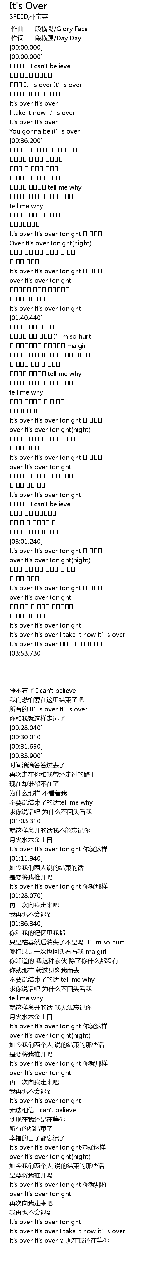 | [03:43.560] | It's over It's over I take it now it’s over |