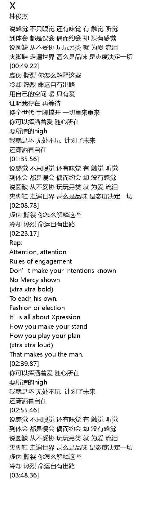 | [01:51.74] | 说圆缺 从不妥协 玩玩另类 就 为爱 流泪 |
