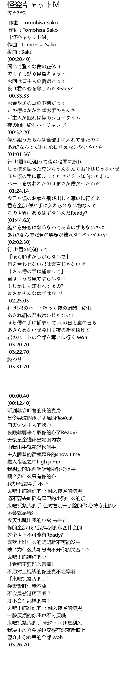 | [00:00.40] | 「怪盗キャットM」 |