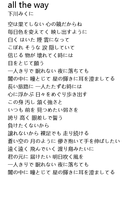 | 空は果てしない 心の鏡だからね | |