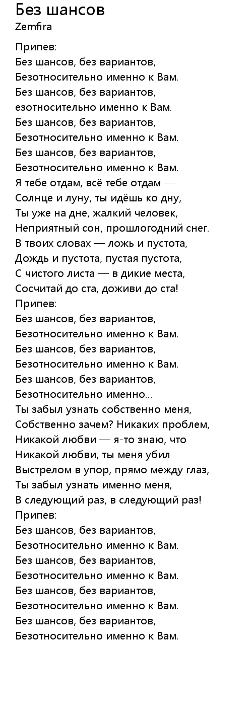 Без шансов, без вариантов, |