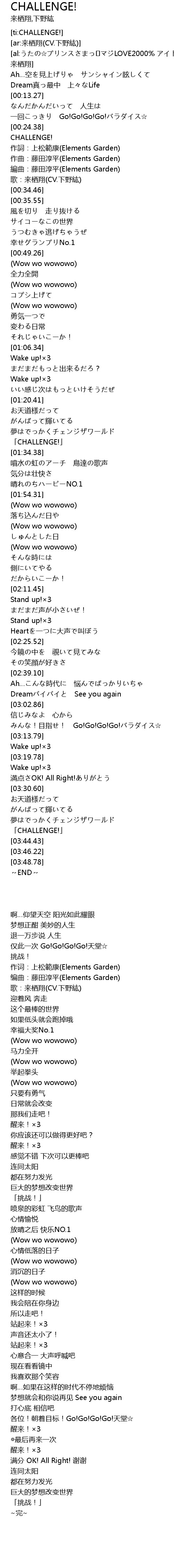 | [03:43.63] | 「CHALLENGE!」 |