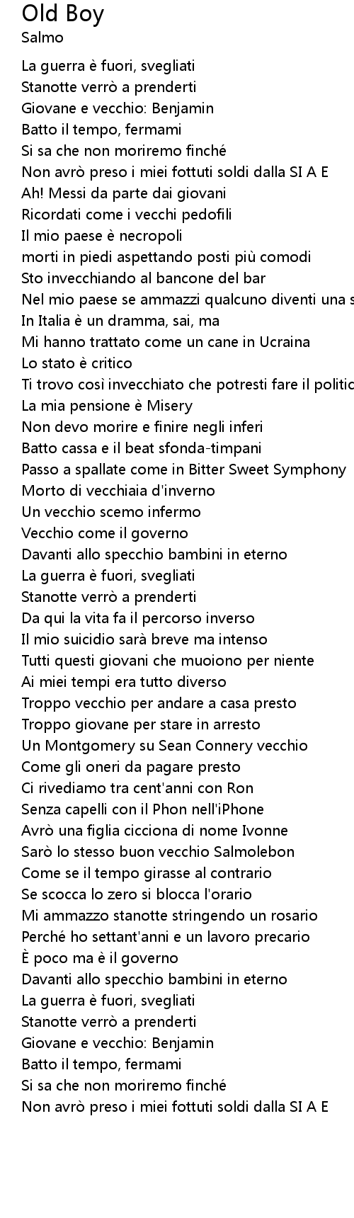 | [01:49.38] | Sarò lo stesso buon vecchio Salmolebon |