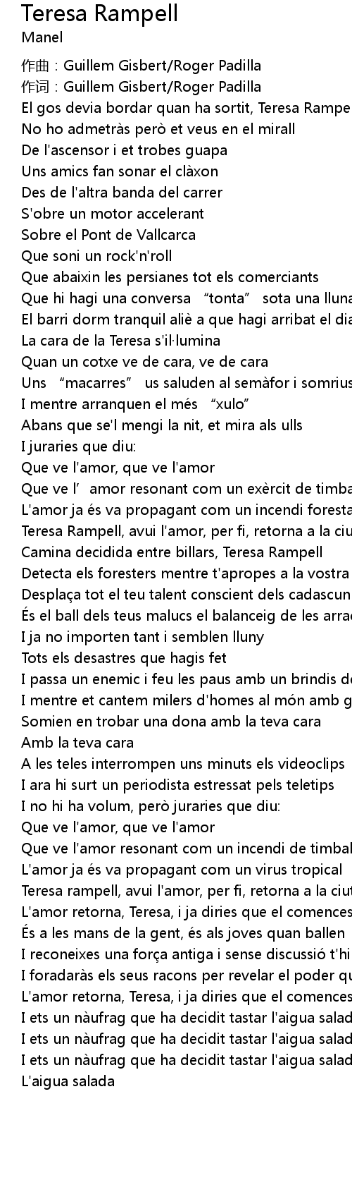 | [03:58.05] | Teresa rampell, avui l'amor, per fi, retorna a la ciutat |
