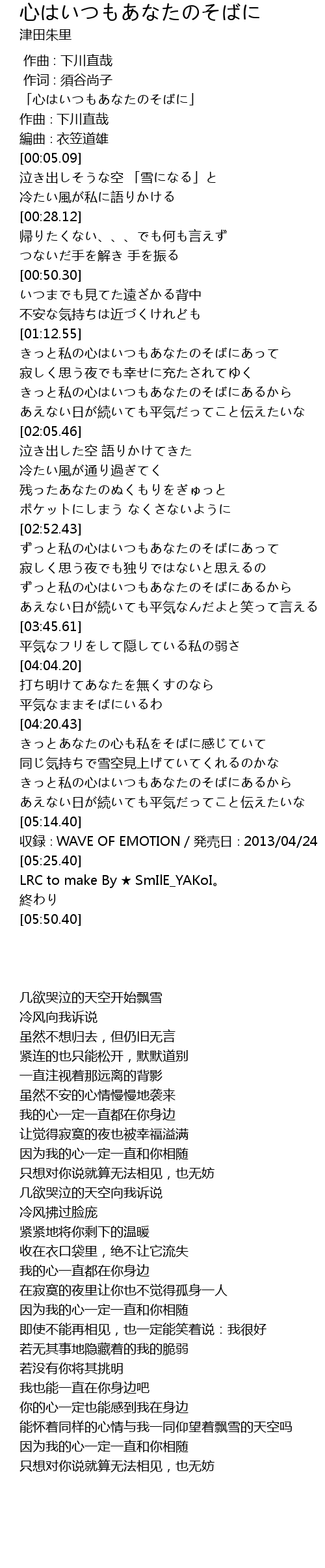 | [00:00.09] | 「心はいつもあなたのそばに」 |