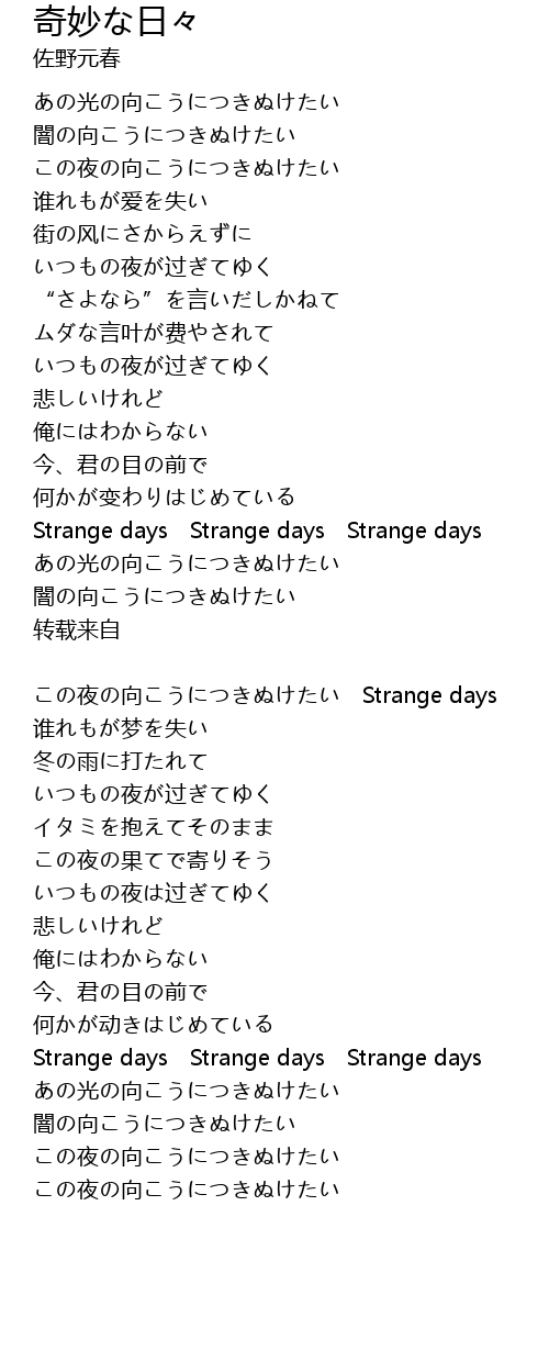 | Strange days Strange days Strange days | |