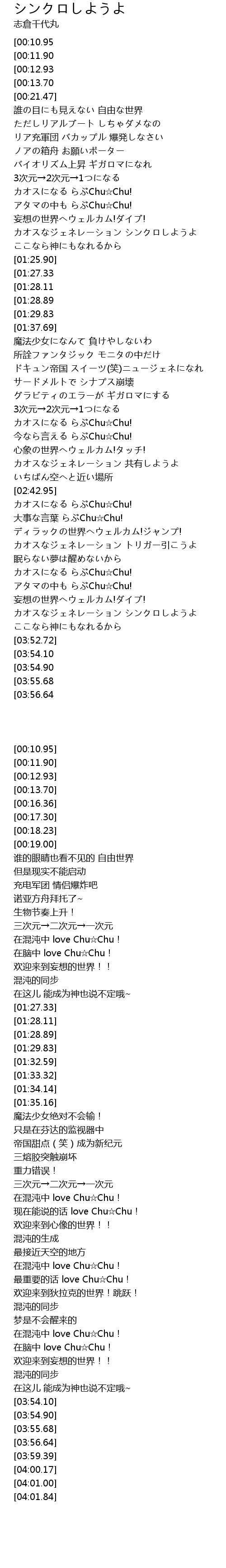 | [03:32.78] | カオスになる らぶChu☆Chu! |