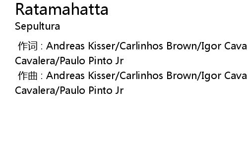 | [00:00.000] | 作词 : Andreas Kisser/Carlinhos Brown/Igor Cavalera/Max Cavalera/Paulo Pinto Jr |