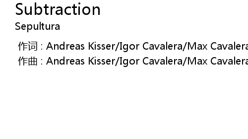 | [00:00.000] | 作曲 : Andreas Kisser/Igor Cavalera/Max Cavalera/Paulo Pinto Jr |