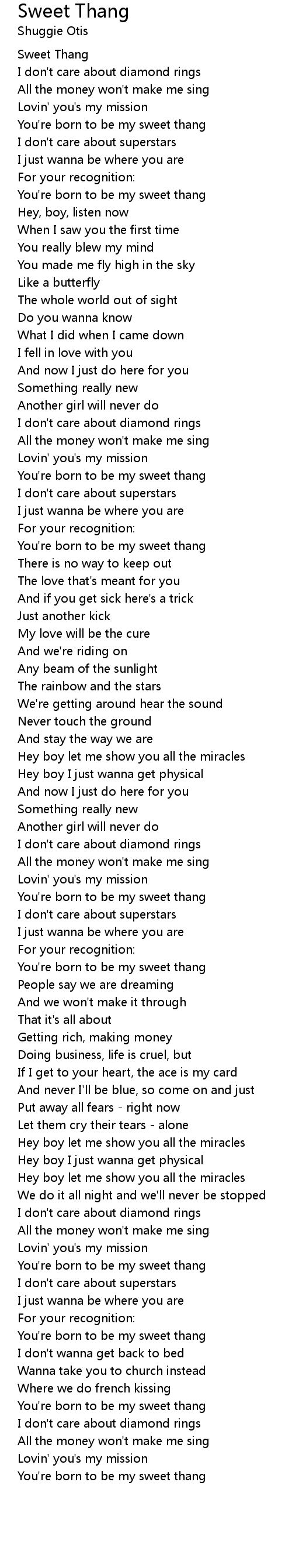 You're born to be my sweet thang |
