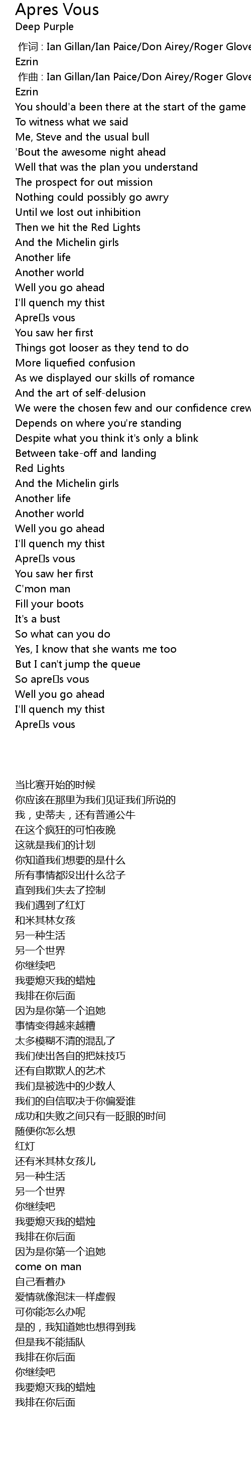 | [00:01.000] | 作曲 : Ian Gillan/Ian Paice/Don Airey/Roger Glover/Steve Morse/Bob Ezrin |