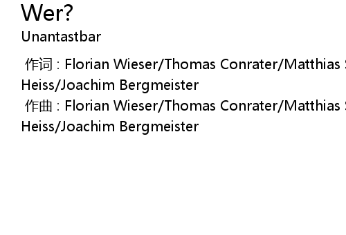 | [00:00.000] | 作曲 : Florian Wieser/Thomas Conrater/Matthias Speranza/Christian Heiss/Joachim Bergmeister |