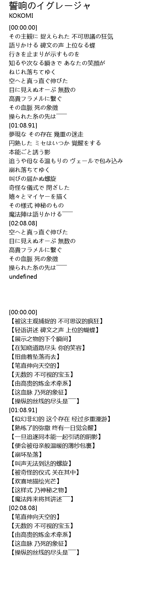 | [00:28.05] | 語りかける 碑文の声 上位なる蝶 |