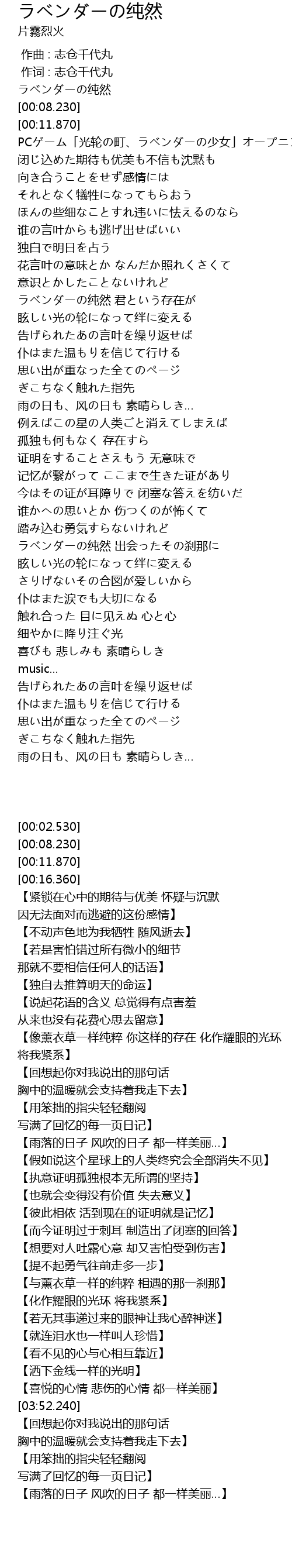 | [03:08.270] | ラベンダーの纯然 出会ったその刹那に |